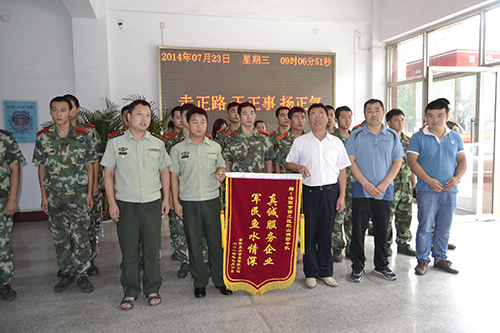 军民鱼水情,百姓记心间。2014年7月23日在“八一”建军节即将到来之际,wanmeitiyu.com副总经理田立文带领公司相关部门人员前往洛阳市西工区消防大队进行慰问,并向西工消防红山中队赠送“真诚服务企业,军民鱼水情深”的锦旗一面,以感谢两年来洛阳西工消防大队及红山中队对wanmeitiyu.com消防安全工作的全力支持和帮助。