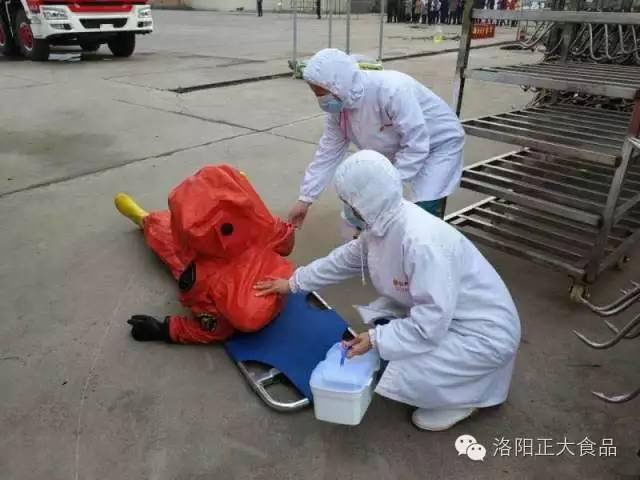 首先,安环科科长向119指挥中心报警,由于氨泄漏扩散企业无法自行进行处置,并有值班人员氨中毒晕倒,请求支援。红山消防中队接到报警后即刻赶到漏氨现场,一队消防战士着防化服立即进入现场,对氨中毒人员进行了抢救,同时对氨泄漏进行了应急处置。另一队消防战士紧急指挥车间人员进行疏散到安全区域,并用水枪喷水中和泄漏的氨,降低空气中的氨浓度。经过近半个小时左右的抢险维修,氨泄漏得到控制,周围环境中的氨浓度降低到正常水平,演练指挥中心宣布本次模拟液氨泄漏演练***结束。