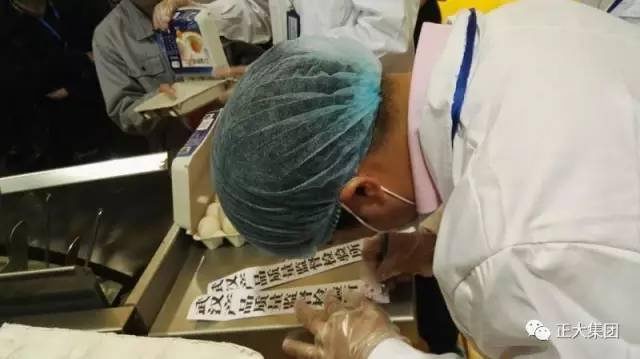 现场,武汉产品质量监督检验所方惠文主任、彭勇胜先生对正大鸡蛋进行现场抽检。