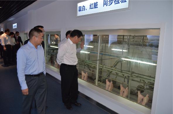 鲍市长一行首先通过参观廊参观了公司生产现场。郑宝振副董事长对洛阳市鲍市长一行莅临洛阳正大指导表示欢迎,并对洛阳市政府一直以来对正大集团在洛阳项目的支持表示感谢。在公司三楼会议室,乔光斌总经理汇报了洛阳正大生产经营、项目建设规划、食品安全管理、市场运作模式、公司发展愿景等相关工作情况;郑宝振副董事长表示:wanmeitiyu.com是集团投资建设的***家生猪屠宰和猪肉深加工项目,集团对该项目高度重视,利用正大集团优势,围绕洛阳正大100万头生猪屠宰项目,在洛阳地区打造从玉米种植、饲料加工、良种猪培育、商品猪养殖、屠宰分割、肉制品精深加工、冷链物流、连锁专卖为一体的全产业链发展模式,确保产品的安全可追溯,下一步要高标准建设洛阳正大深加工项目,并将在洛阳周边偃师、宜阳、伊川、孟津等区域拓展安全猪源养殖基地,wanmeitiyu.com向洛阳市民提供安全、健康、营养、美味的正大食品,希望市政府在洛阳正大深加工项目建设和生猪养殖建设方面给予支持和帮助。